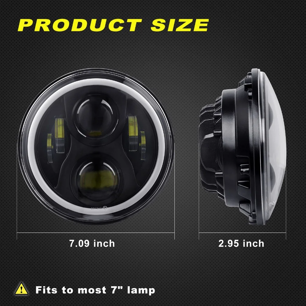 WINING 60W 7inch Round Led Headlight High Low Beam Light Halo Angle Eyes DRL Headlamp For Off Road