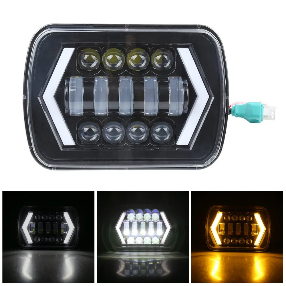 7x6" LED Headlight 5x7 inch Sealed Beam Led Headlight with White DRL/Amber Turn Signal Arrow Halo f